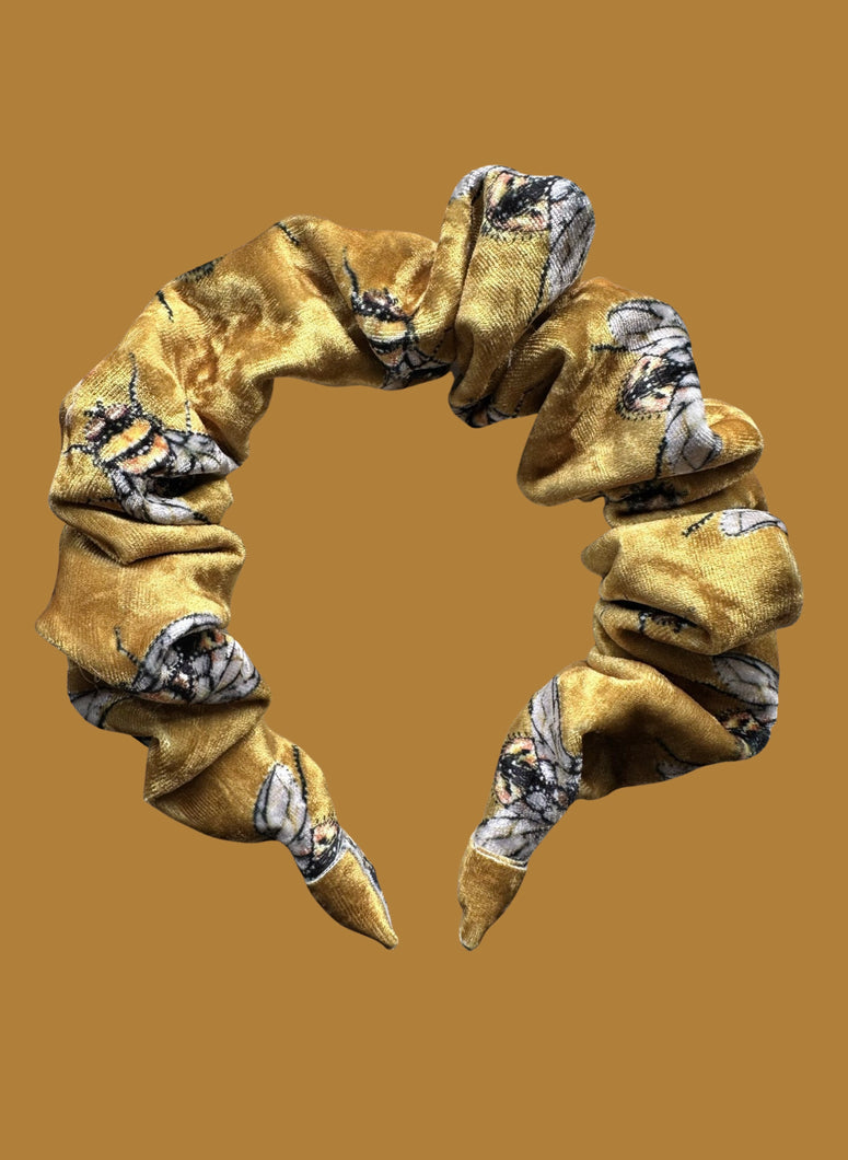 Velvet Scrunchie Headband - Golden Bees