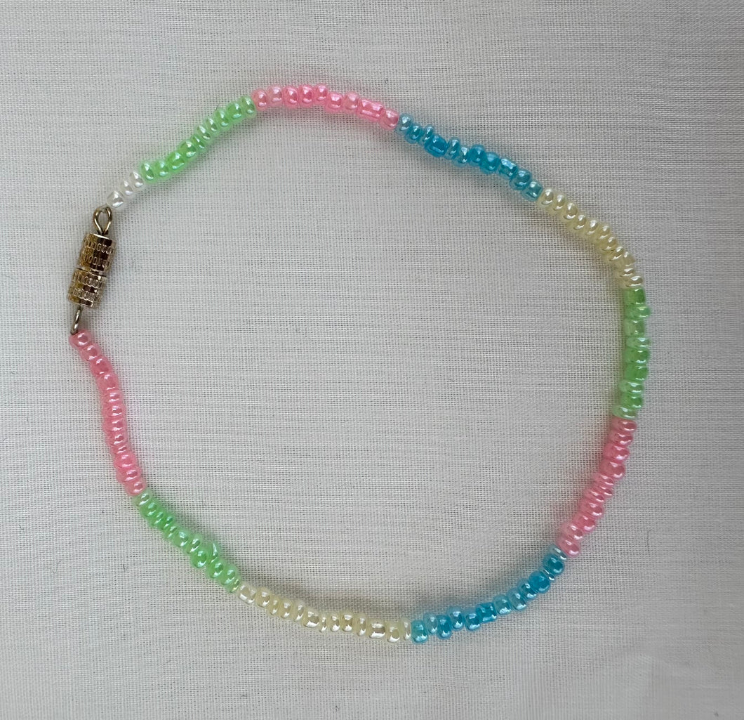Beaded Bracelet- Cream, Blue, Pink & Green 🤍🩵🩷💚