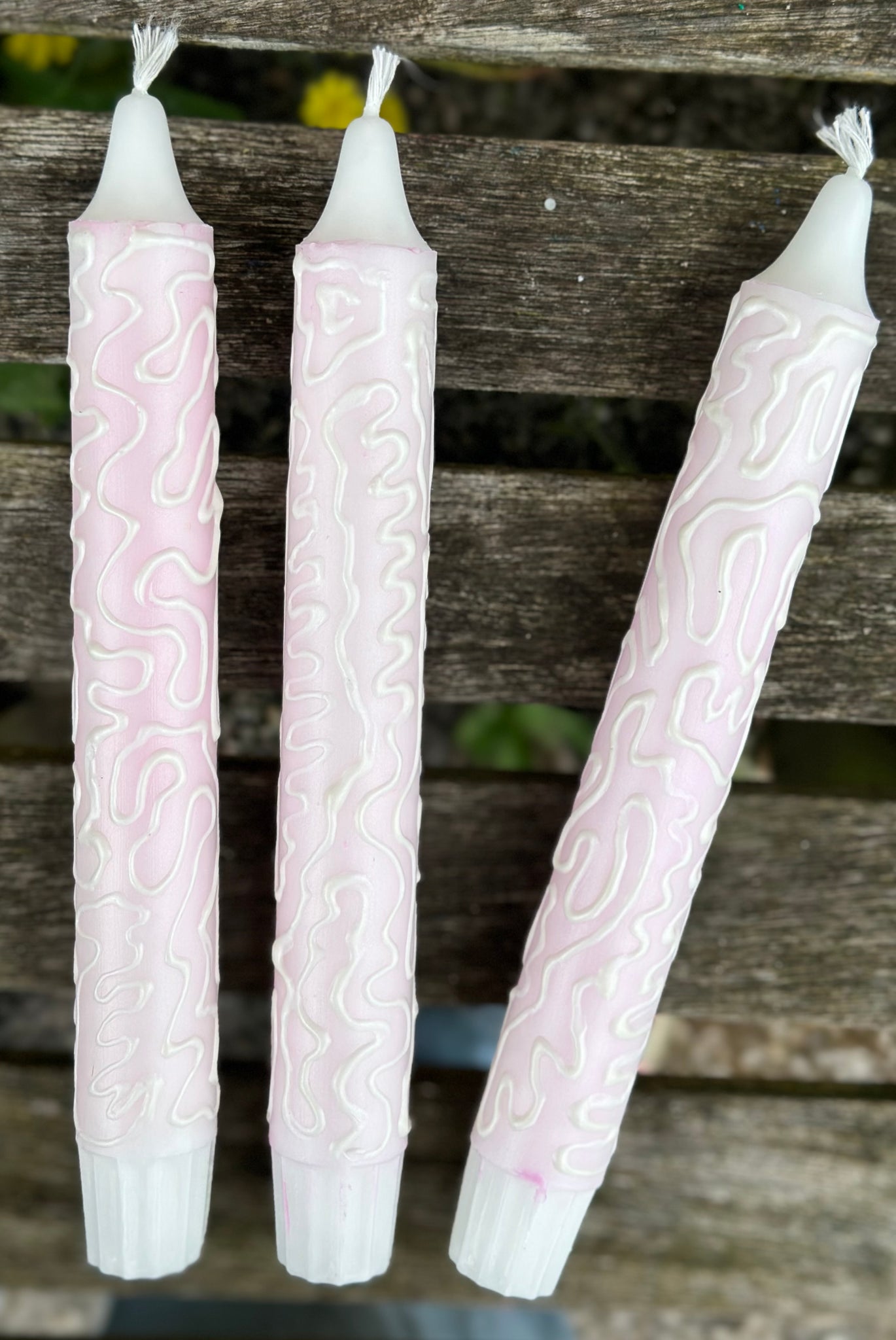 Set of 3 candles. Each candle is lovingly hand painted by Sophie in Lincolnshire. There may be slight differences to each individual candle to the photos, but they are painted to be the same so any differences will be very minor and all just add to the uniqueness of each candle.